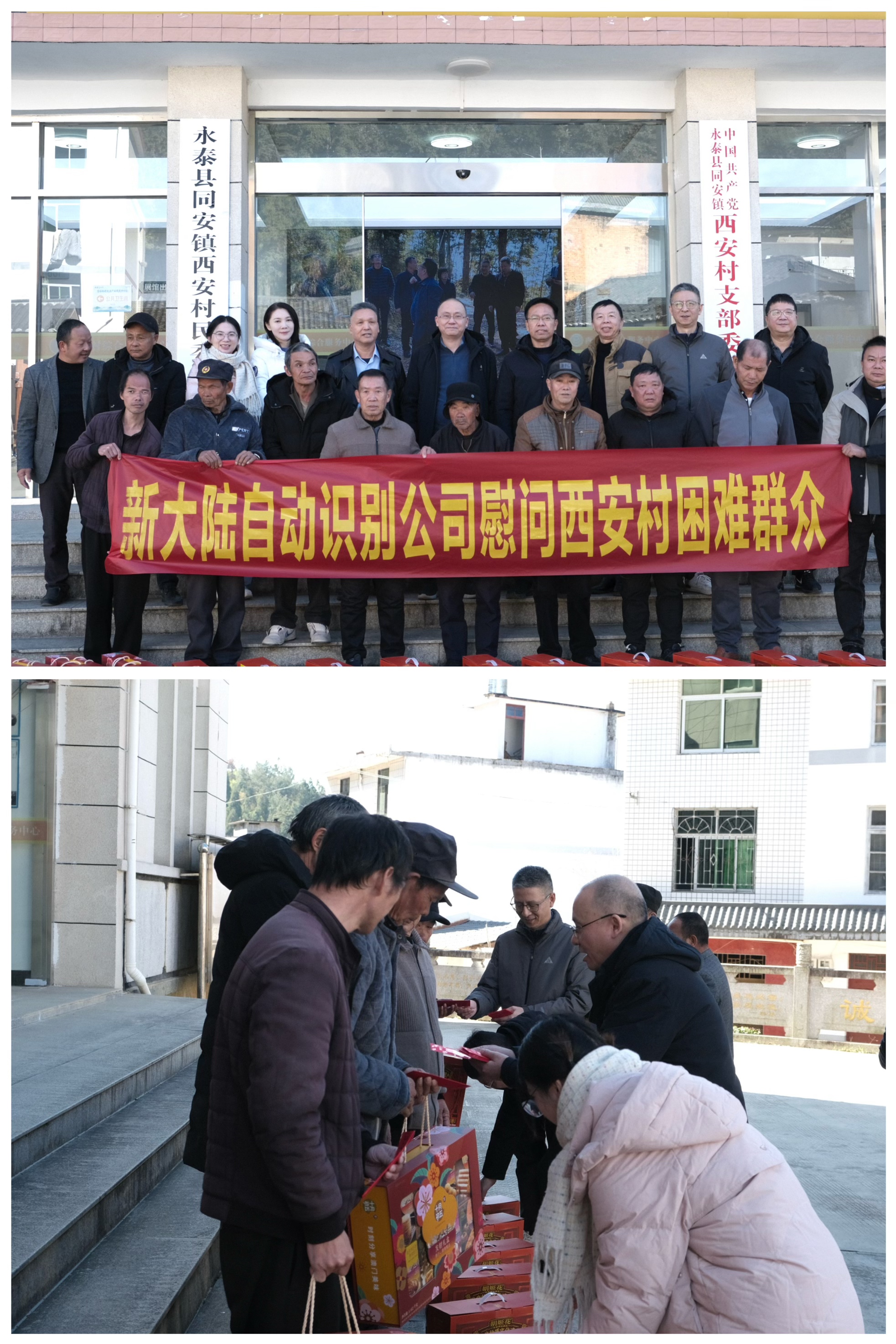 冬日暖陽,山村如畫。2026年1月10日,新大陸自動識別公司總經理郭棟一行再次走進福州市永泰縣同安鎮西安村。全國人大代表、西安村鄉村振興帶頭人盧玉勝,同安鎮黨委書記湯炎燈等共同參與。