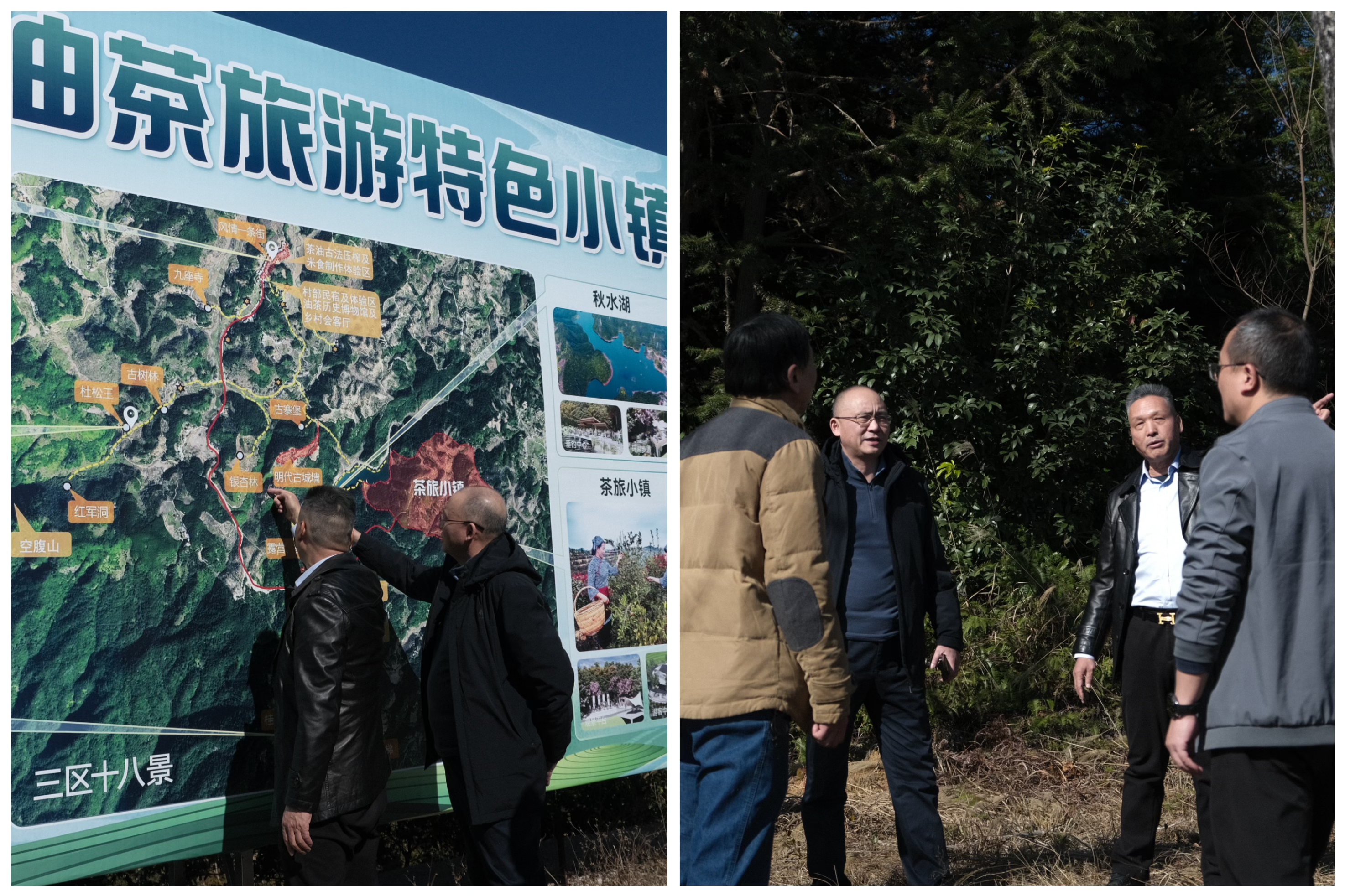 ? ? ? 在盧玉勝代表和湯炎燈書記的陪同下,大家深入西安村的田間地頭與養殖基地,實地察看鄉村振興的蓬勃景象。一行人首先走訪了連綿的銀杏林,金色褪去后枝干依然挺拔,孕育著生態與旅游融合發展的潛力;隨后步入油茶基地,滿山油茶綠意盎然,已成為村民增收的“綠色銀行”。