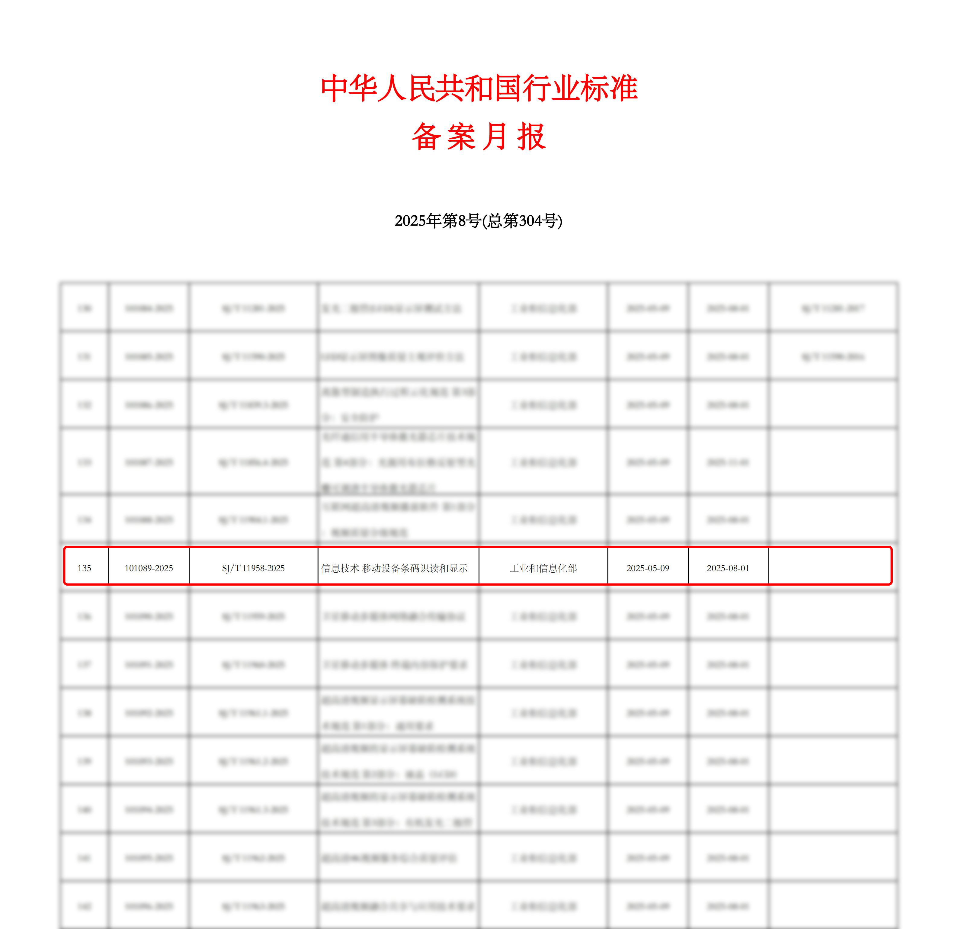 近日,工業(yè)和信息化部發(fā)布的行業(yè)標(biāo)準(zhǔn)《信息技術(shù) 移動(dòng)設(shè)備條碼識(shí)讀和顯示》(標(biāo)準(zhǔn)號(hào):SJ/T 11958-2025)已正式實(shí)施,成功填補(bǔ)了國(guó)內(nèi)移動(dòng)設(shè)備條碼識(shí)讀標(biāo)準(zhǔn)的空白。該標(biāo)準(zhǔn)由新大陸數(shù)字技術(shù)股份有限公司主持,中國(guó)電子技術(shù)標(biāo)準(zhǔn)化研究院、福建省產(chǎn)品質(zhì)量檢驗(yàn)研究院、螞蟻科技集團(tuán)股份有限公司、福建新大陸自動(dòng)識(shí)別技術(shù)有限公司等9家單位共同參與制定。其中,蔡春水、李霖、郭鋒等新大陸專(zhuān)家作為主要起草人,深度參與了標(biāo)準(zhǔn)關(guān)鍵技術(shù)條款的論證與制定。